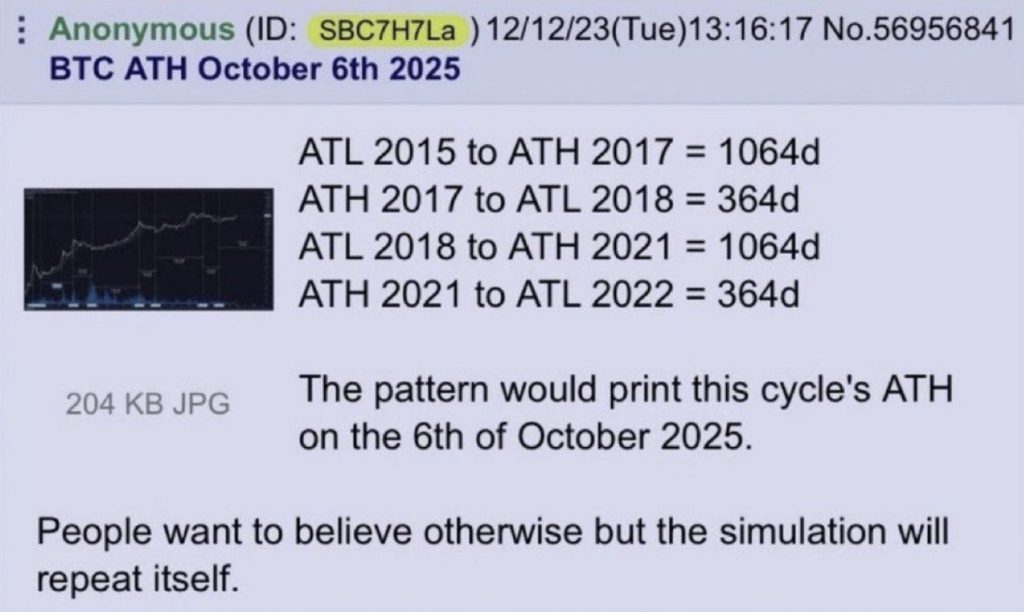 On Crypto Twitter, a screenshot of a forum post from December 2023 has been doing the rounds that took note of this pattern — and attempted to offer a Bitcoin prediction for the current cycle.