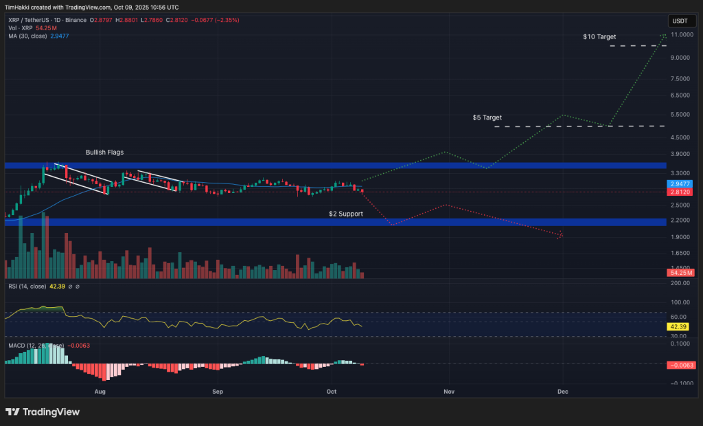 Technical charts highlight three bullish flag formations that emerged throughout 2025, two of them during the summer months. This hints at an overdue breakout heading into Q4.
