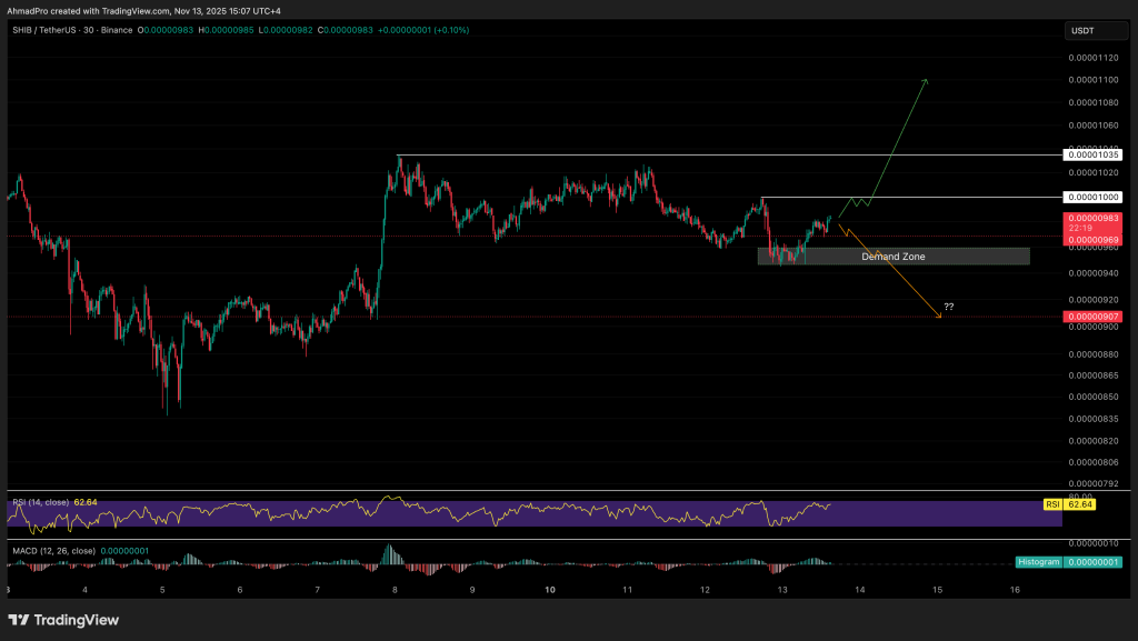 The RSI is sitting around 64, which shows the momentum is still leaning bullish. If SHIB can close above 0.0000100 with some real volume behind it, a push toward 0.00001035 and maybe even 0.0000112 is on the table.