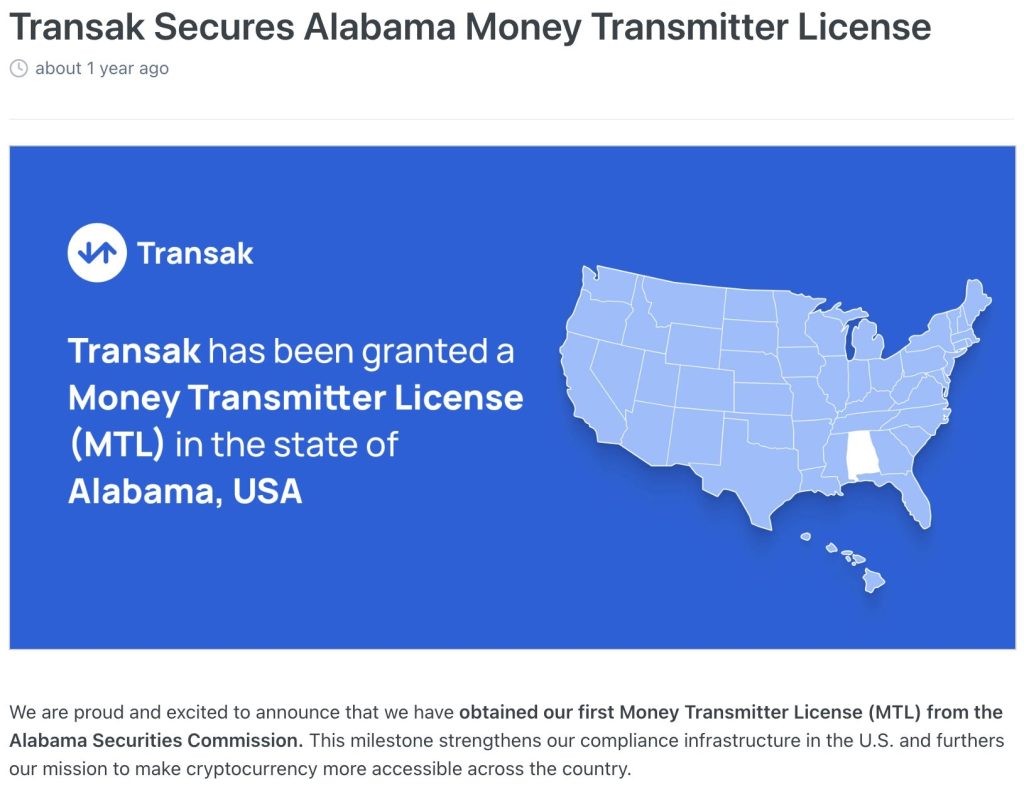 Transak obtained its first state license in Alabama in 2024 and already serves users in 46 states through partners. Its move toward full direct licensing marks a shift from third-party access to a fully compliant, native payments network built to meet evolving U.S. regulatory standards.